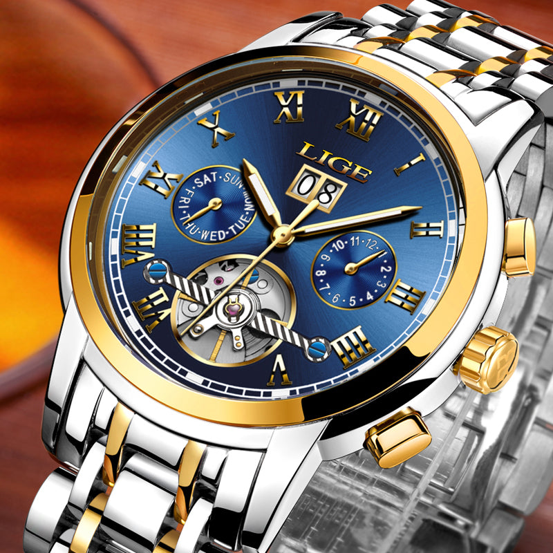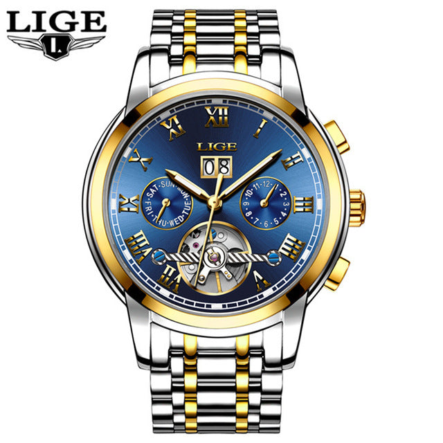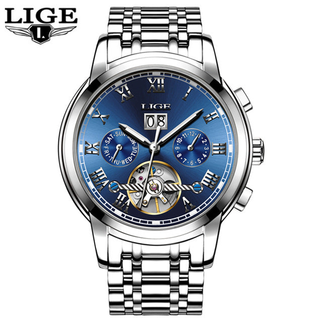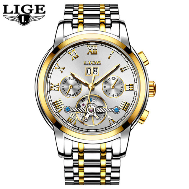 LIGE Men Watches New Top Brand Luxury Automatic Mechanical Watch Business Waterproof Sport Clock Men Watches Relogio Masculino