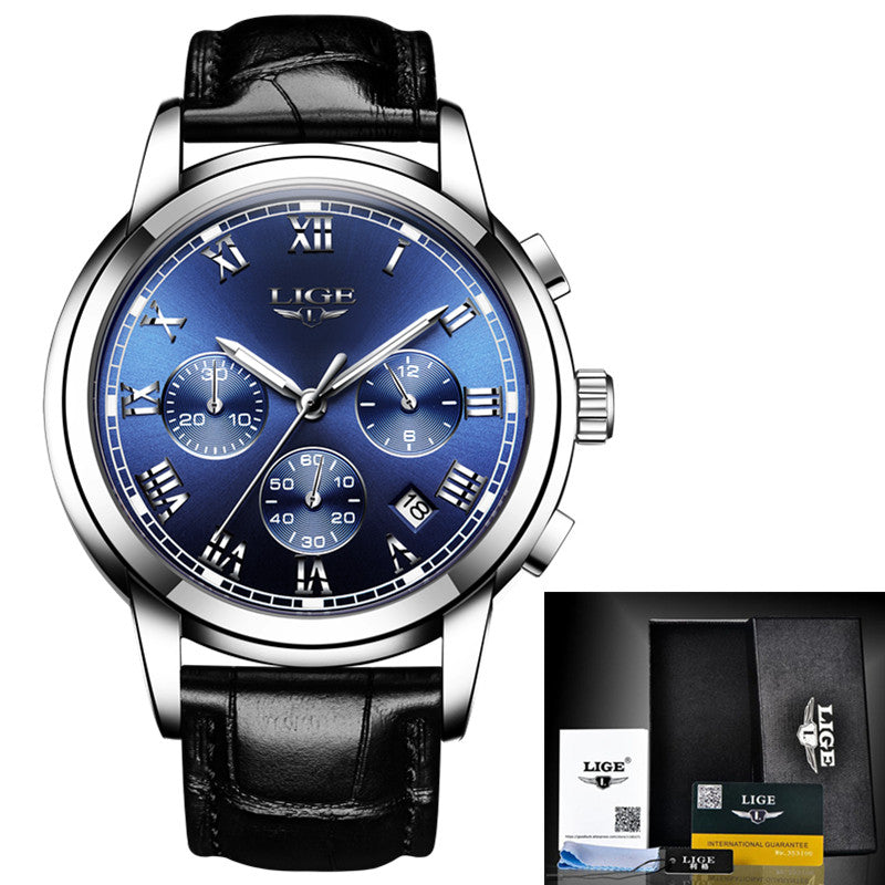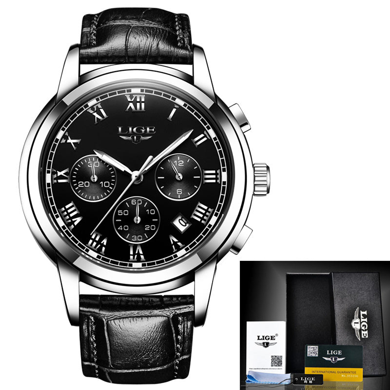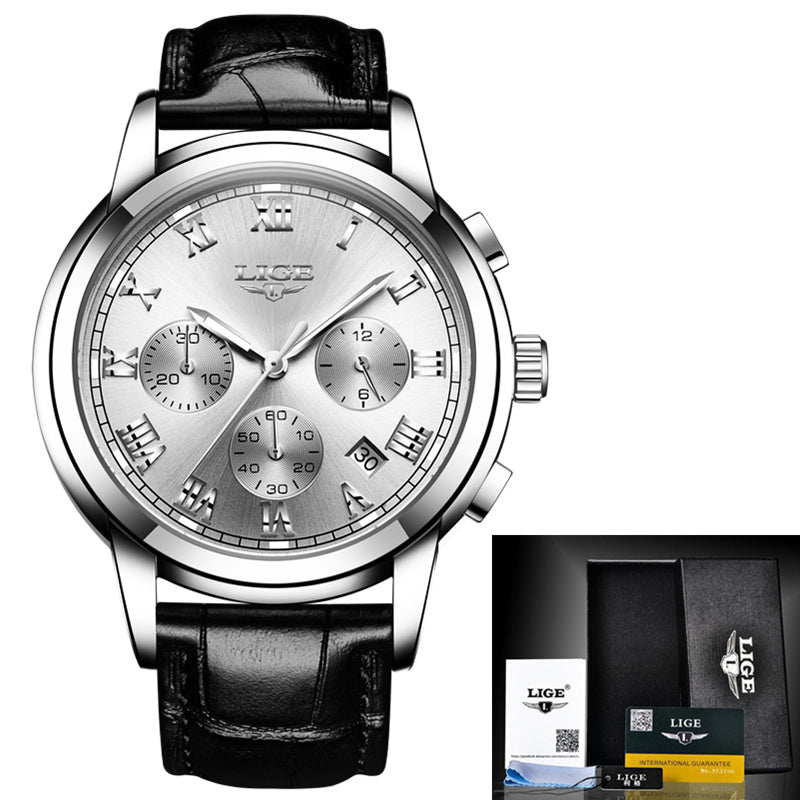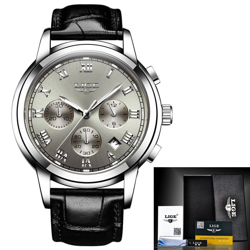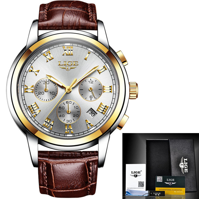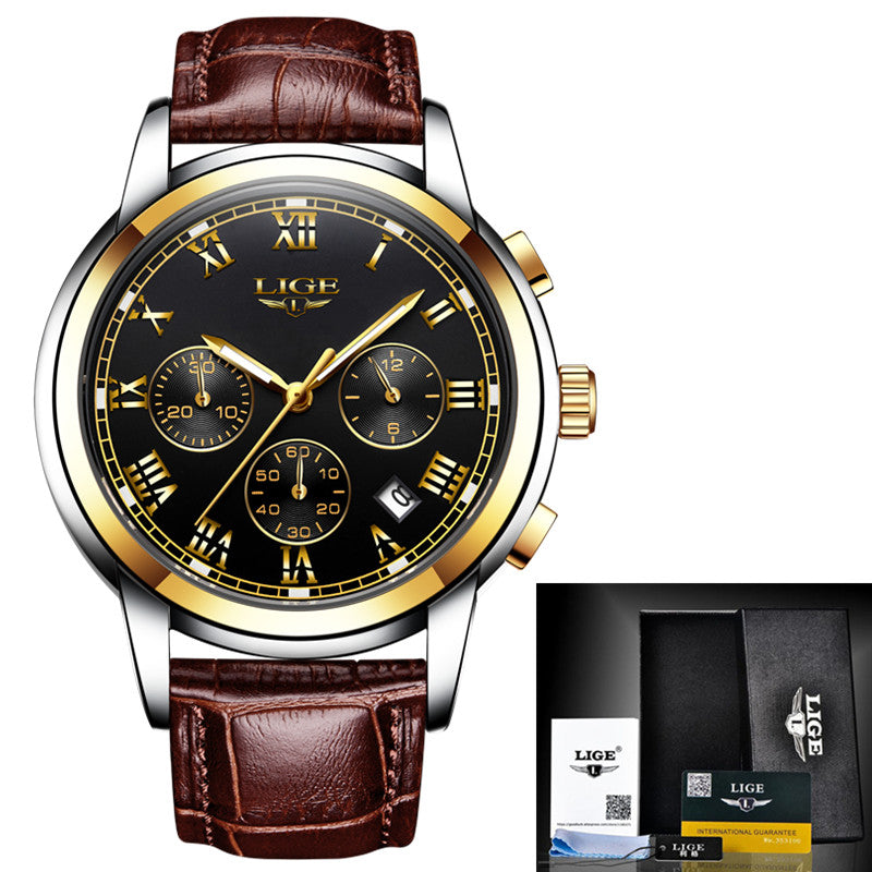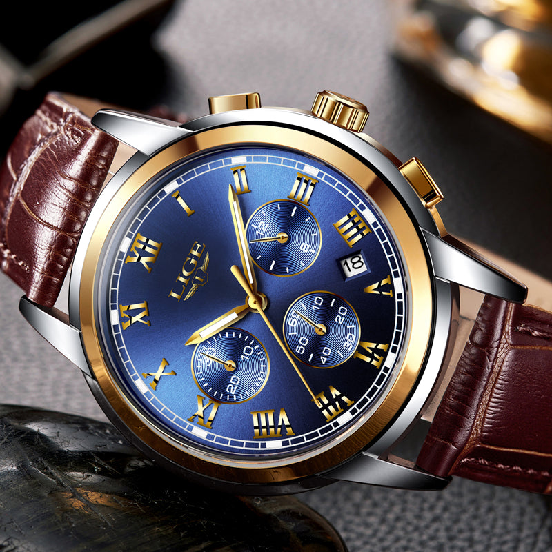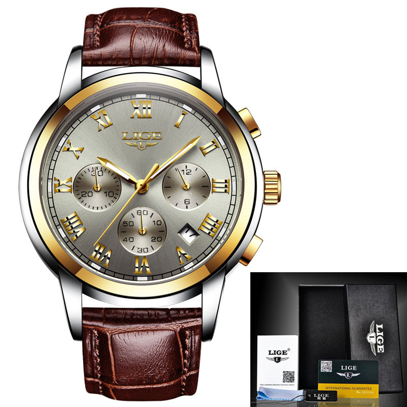 LIGE Mens Watches Top Brand Luxury Leather Casual Quartz Watch Men Military Sport Waterproof Clock Gold Watch Relogio Masculino