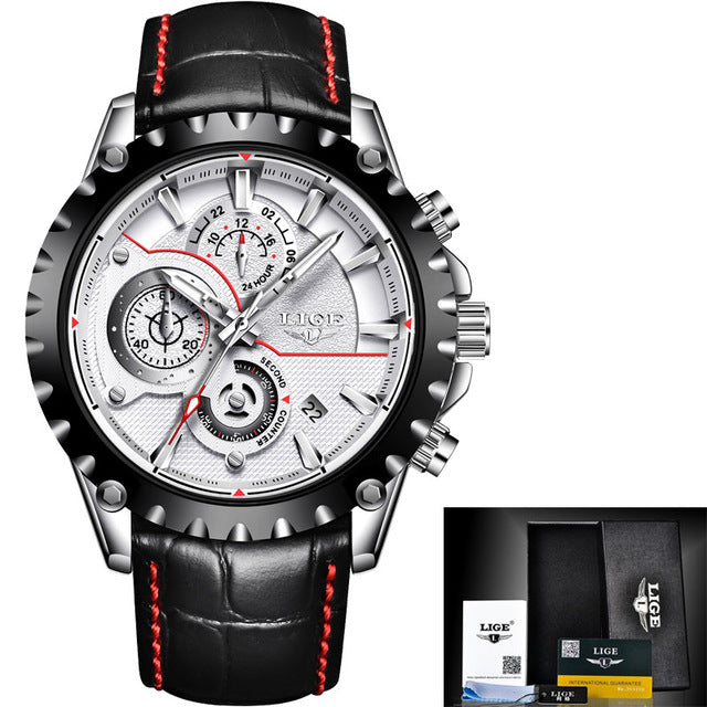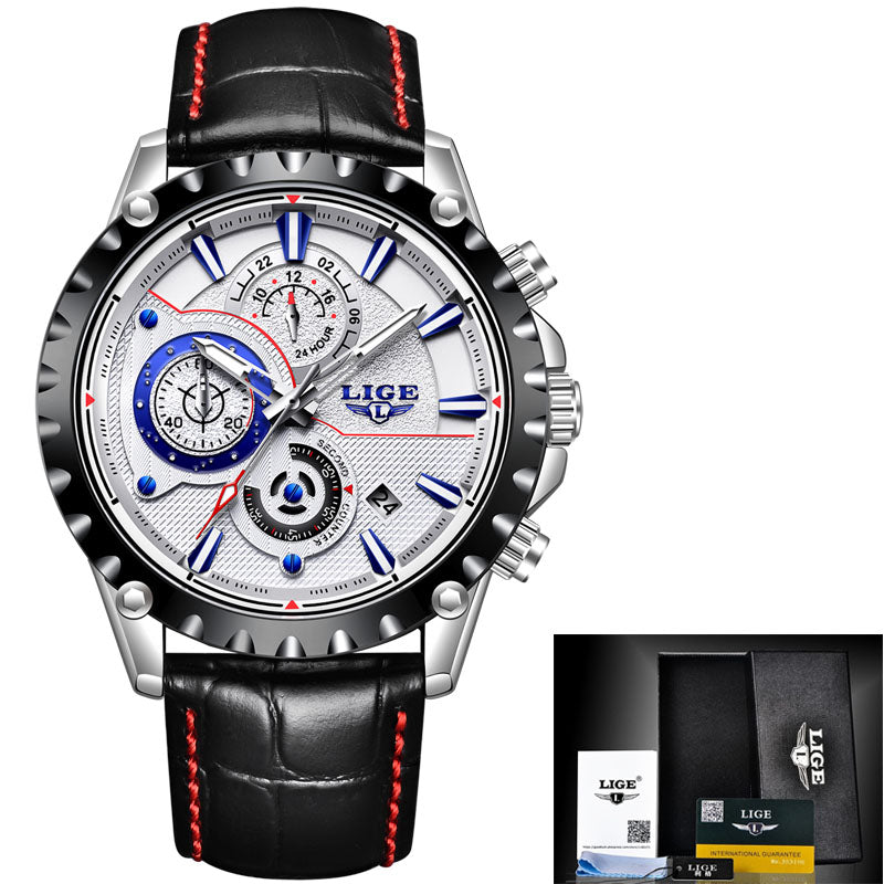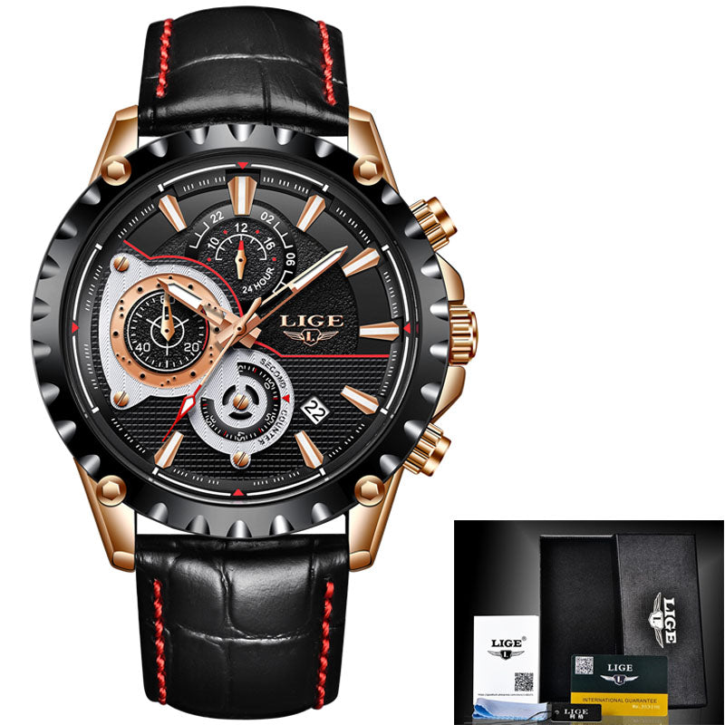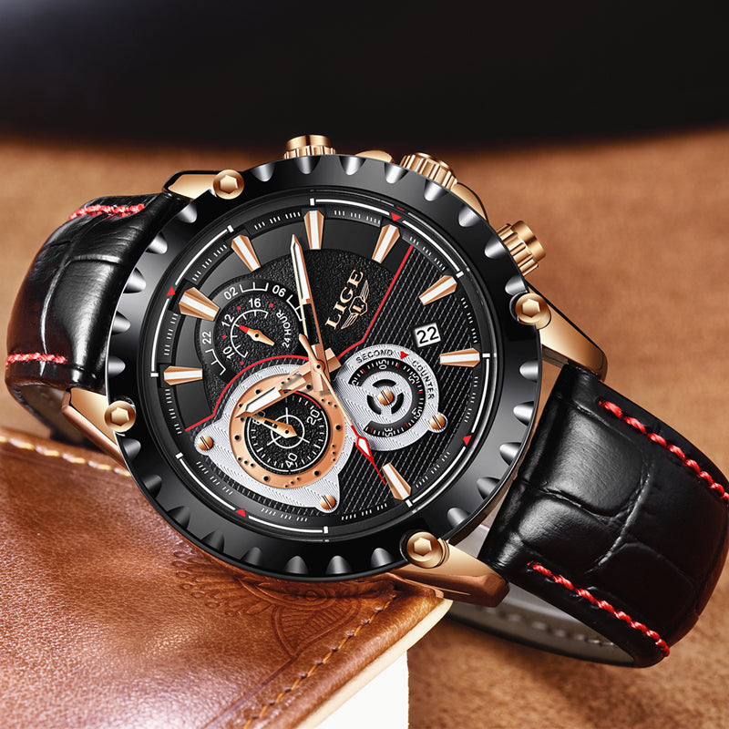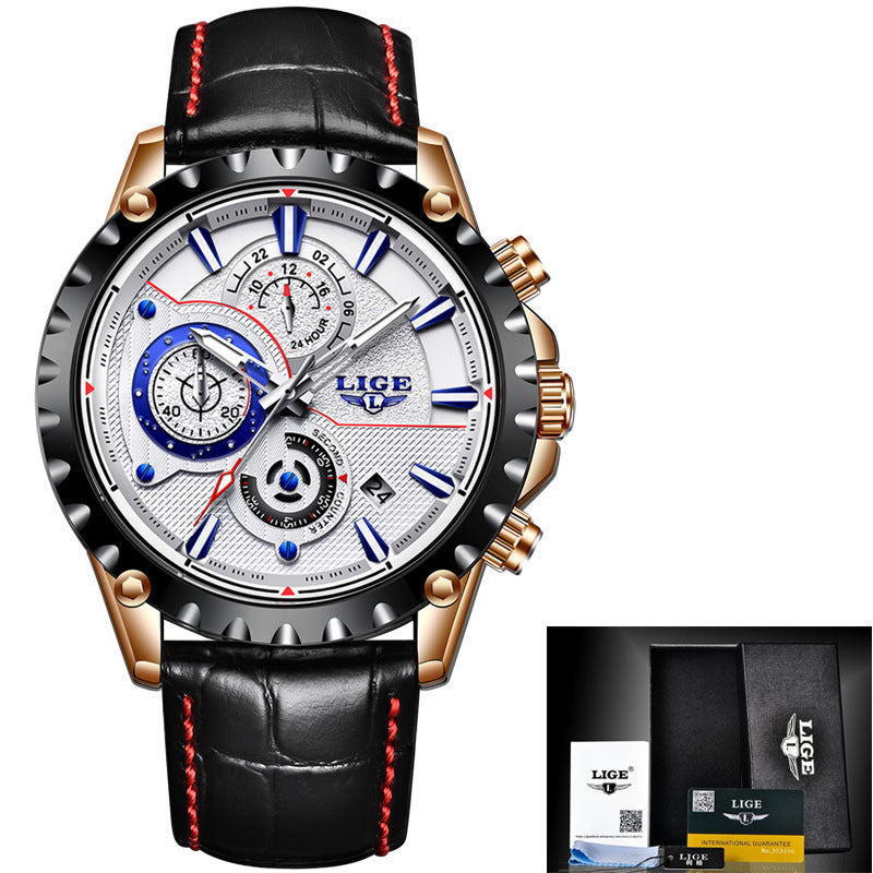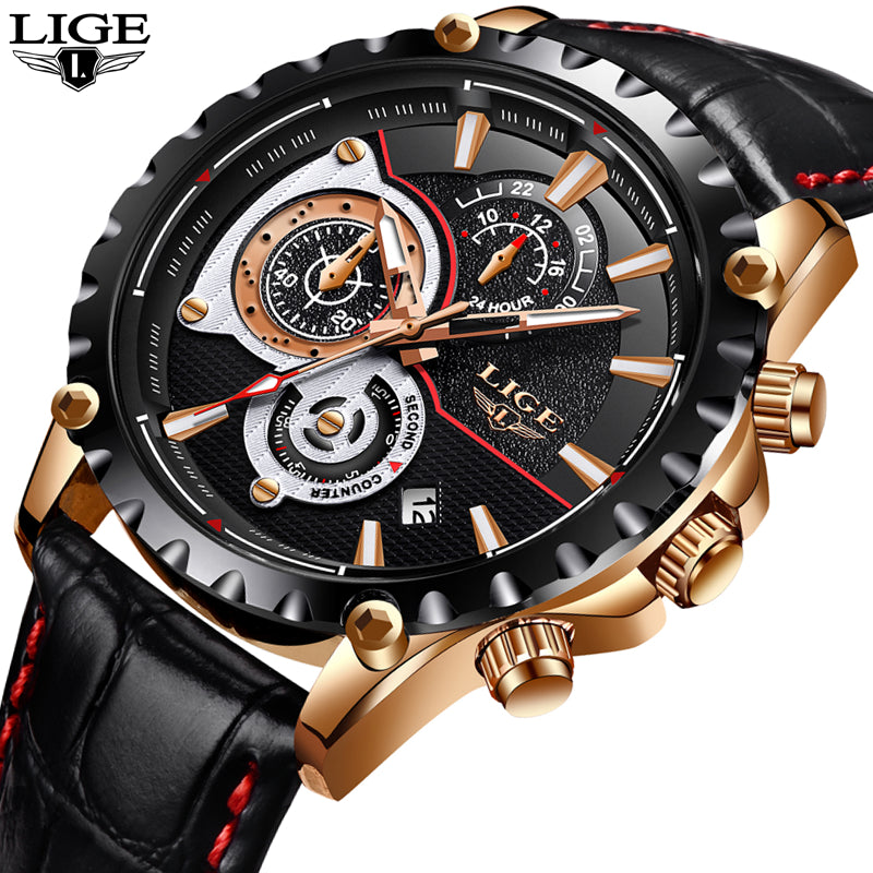 LIGE Mens Watches Top Brand Luxury Quartz Gold Watch Men Casual Leather Military Waterproof Sport Wrist Watch Relogio Masculino