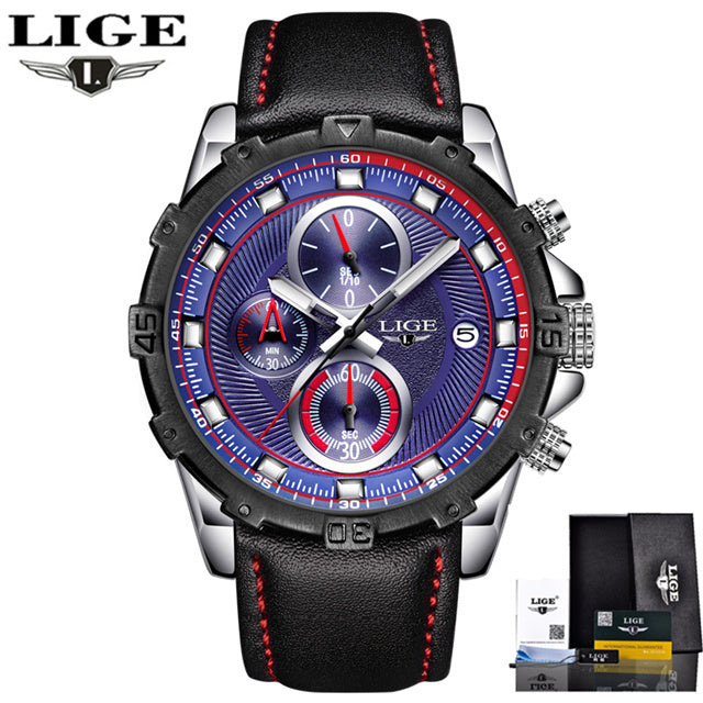 LIGE Watch Men Stopwatch Chronograph Waterproof Clock Mens Watches Top Brand Luxury Casual Sport Quartz Watch Relogio Masculino