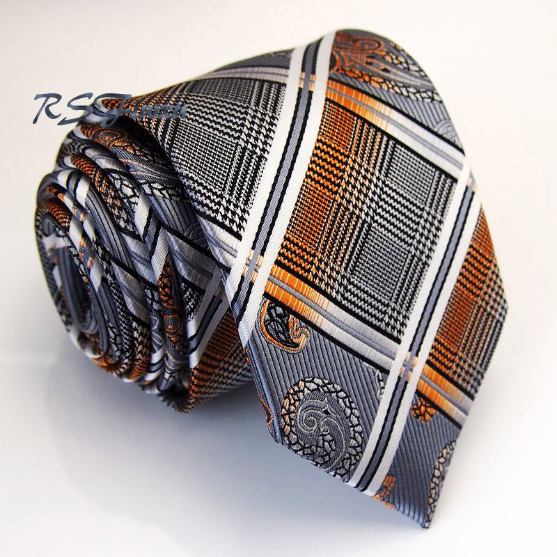 Long tie Paisley Glod Silver 100% Silk Necktie New Fashion Jacquard Woven Classic Mens Tie Brand Wholesale