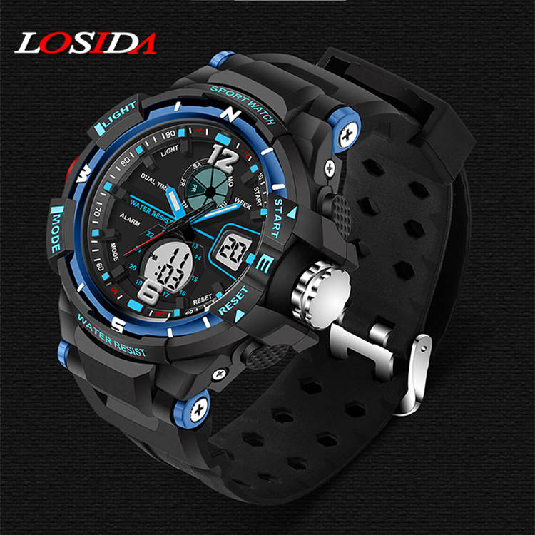 Losida Luxury Brand G Rubber Strap Shock Watch Military Army Blue LED Pointer Waterproof Men Sports Watches Clock relogio Male