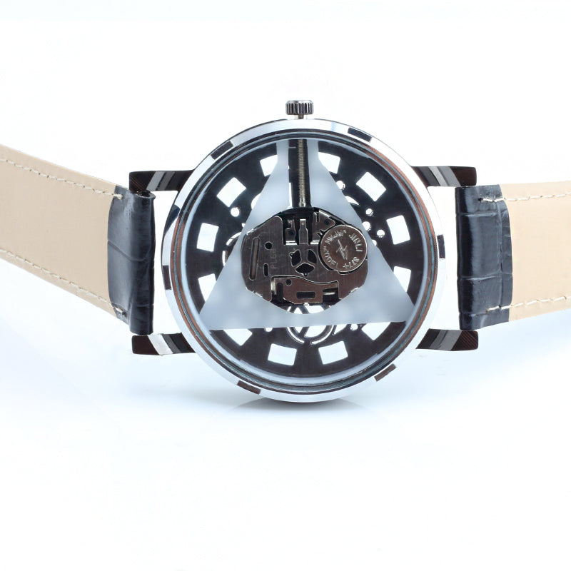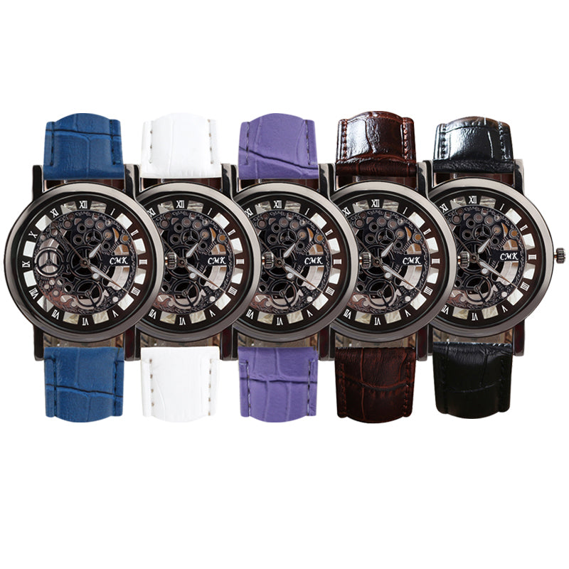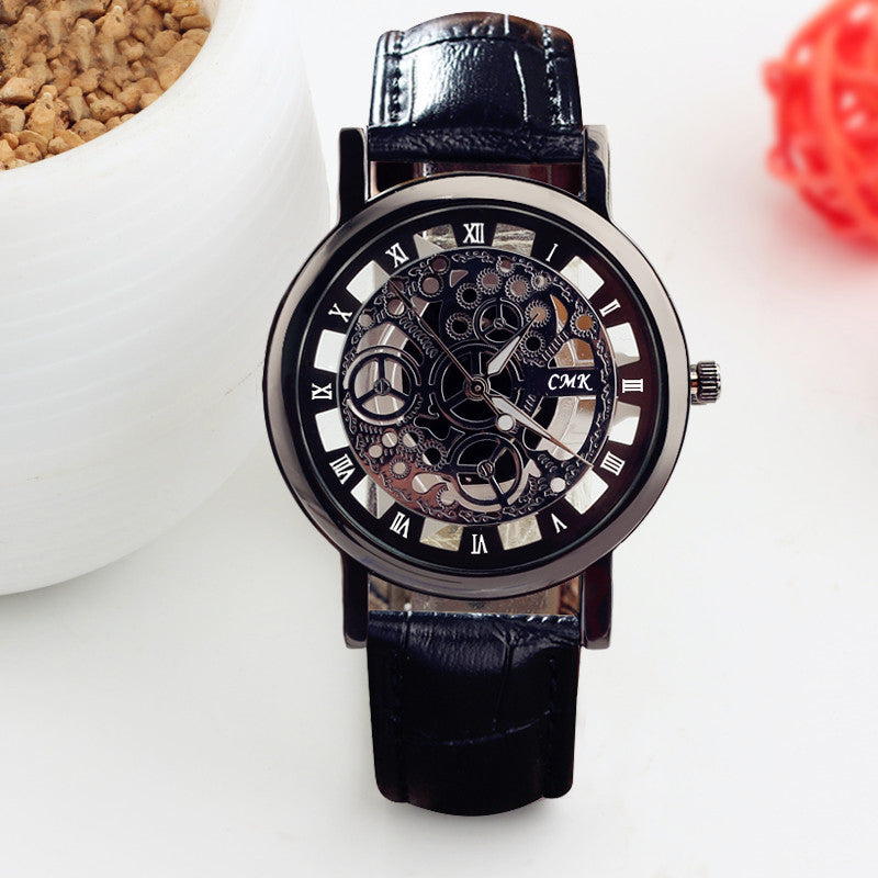 Luxury Fashion Casual Leather strap Men Skeleton Watch Women Dress Quartz Watches Engraving Hollow Business Wristwatch Relogio