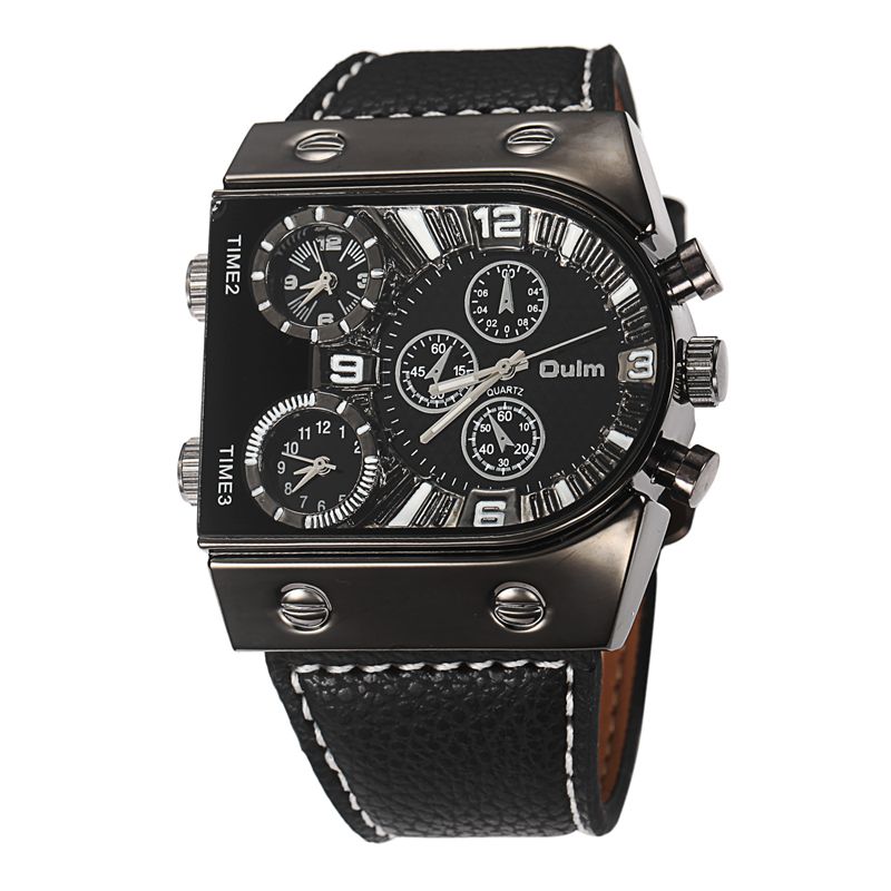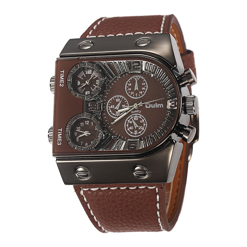 Luxury Men Watch Leather Wrist Watch For Man Three Time Zone Watches Military Clock Male Sport Big Quartz-watch montre homme
