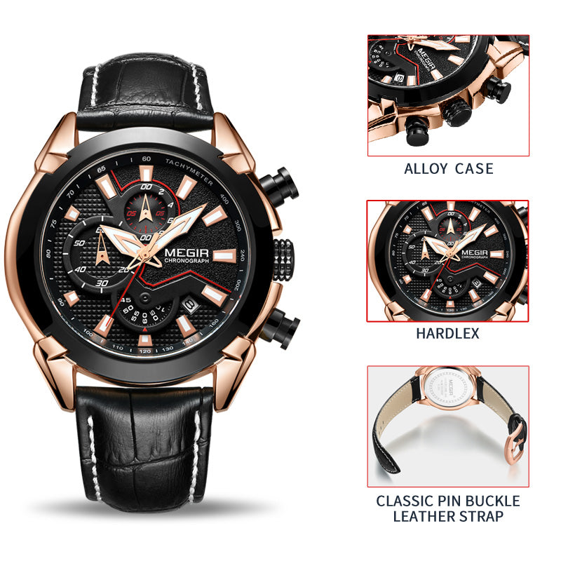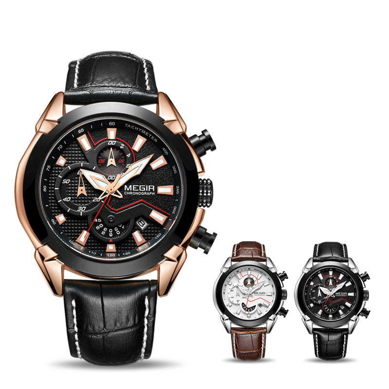 MEGIR Creative Quartz Men Watch Leather Chronograph Army Military Sport Watches Clock Men Relogio Masculino Reloj Hombre 2065