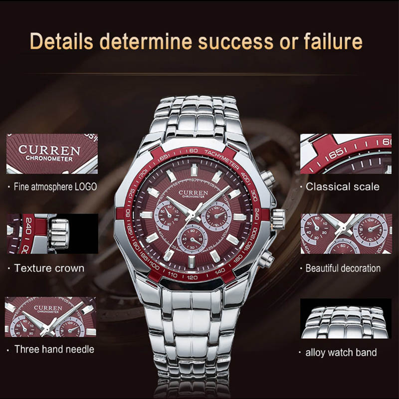 Men Business Watch Clock Curren Mens Watches Top Brand Luxury Military Full Stainless Steel Quartz Wrist Watch Relogio Masculino