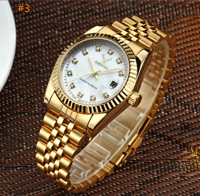 Men watch Deerfun brand business gold diamond fashion calendar luxury waterproof quartz wristwatch Relogio Masculino