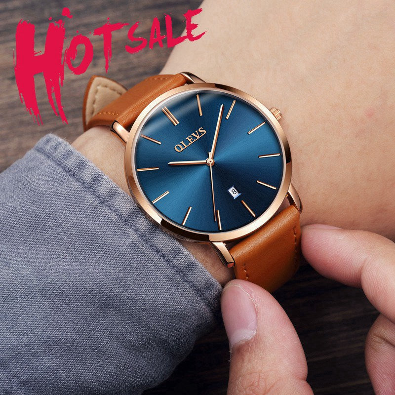Men Watches Luxury Brand Olevs Quartz Genuine Leather Strap Minimalist Ultrathin Wrist Watches Waterproof High Quality Relogio