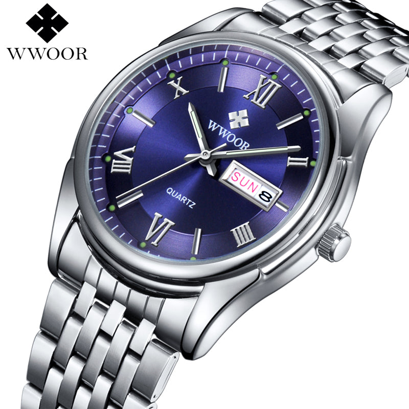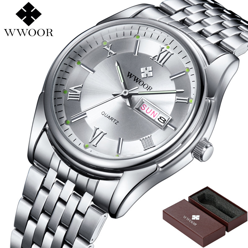 Men Watches Top Brand Luxury Day Date Luminous Hours Clock Male Silver Stainless Steel Casual Quartz Watch Men Sports Wristwatch