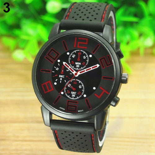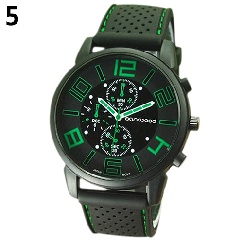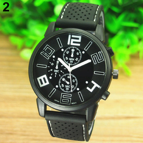 Men's Casual Sports Stainless Steel Silicone Band Quartz Analog Wrist Watch 5ZF6