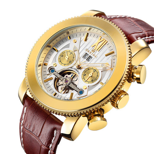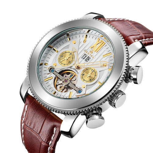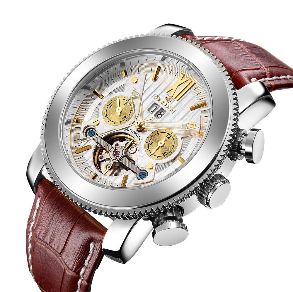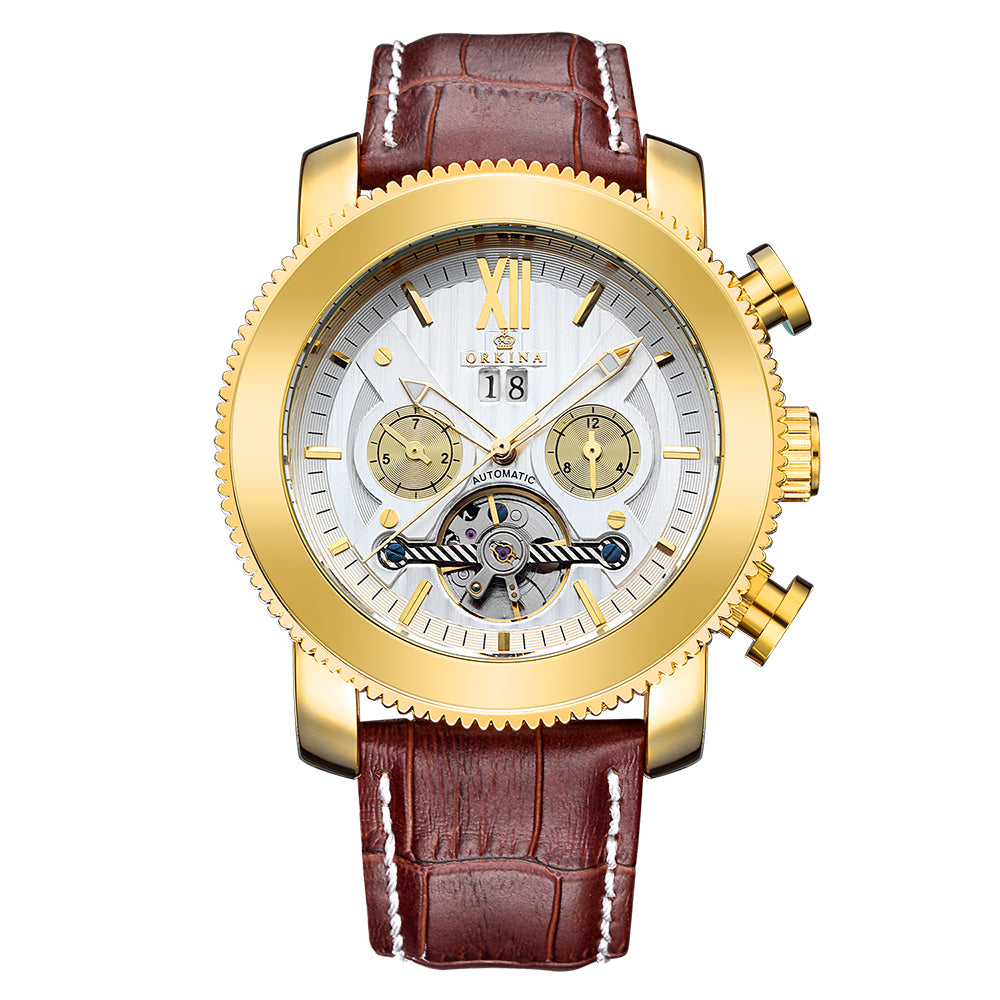 MG. ORKINA Big Case Man Watch Tourbillon Mechanical Male Clock Auto Date Timepiece Leather Strap Display Relogio Masculino