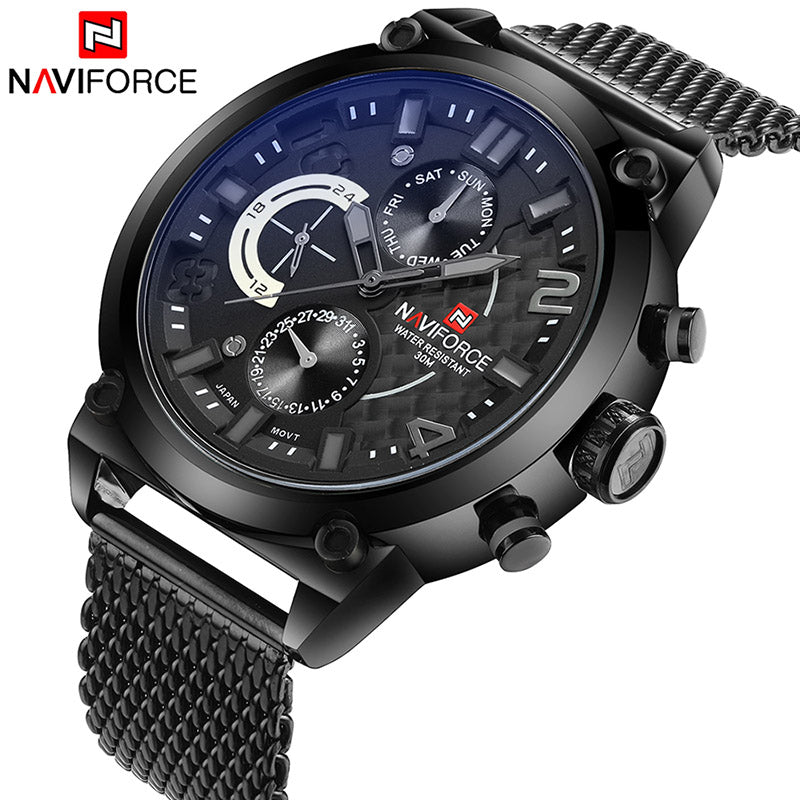 Naviforce Luxury Brand Men Stainless Steel Analog Watches Men's Quartz 24 Hours Date Clock Man Fashion Casual Sports Wirst Watch